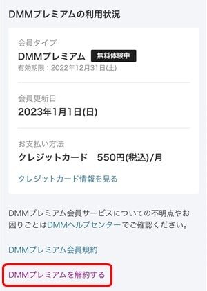 DMM TVの「プレミアム会員」を解約するまでの手順は以下の通り。