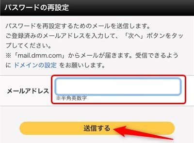 パスワード再設定でDMM TVに登録した「メールアドレス」を入力して、『送信する』をクリック。