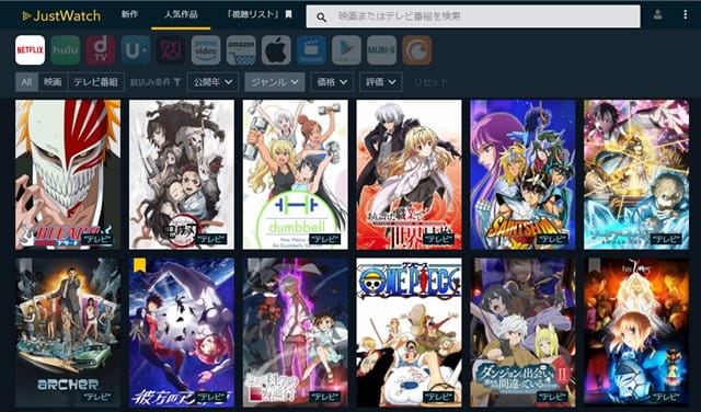 しかし、動画配信サービス横断検索サイト「JustWatch」を使えば、誰でもラインナップ一覧を確認できます。
