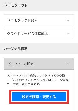 設定(メール等)のメニューからプロフィール設定の「設定を確認・変更する」を押します。