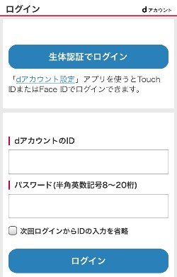 ログイン画面になるので、dアカウントのIDとメールアドレスを入力してログインしてください。