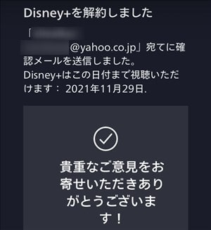 画面に「Disney+を解約しました」と表示されたら、ディズニープラスの公式サイトから解約する方法は完了です。