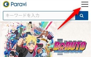Paraviの支払い方法を変更するには、ページ右上の「メニューアイコン」をクリック。