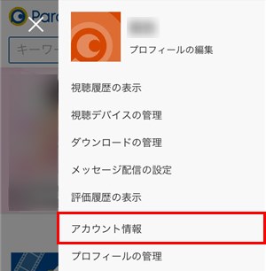 Paraviの支払い履歴を確認するには、ページ右上の「メニュー」を押して、『アカウント情報』を選択。