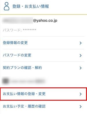 アカウント情報から「お支払い情報の登録・変更」を選択。