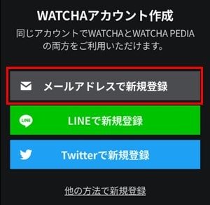 WATCHAアカウント作成になるので、新規登録に利用するメールアドレスまたはアカウントを選びます。