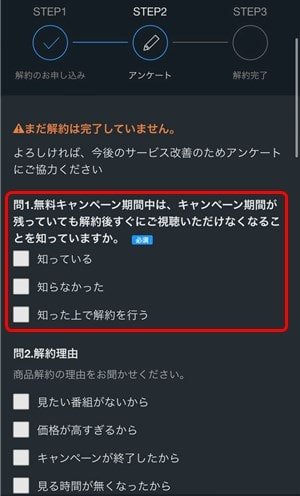 サービス改善のためのアンケートに答えていきます(※無料体験中だと問1.は必須項目)。