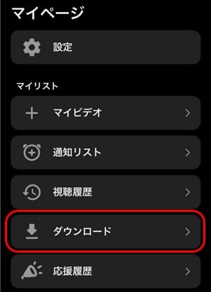ダウンロード設定を変更するには、アプリ画面下の「マイページ」をタップ。