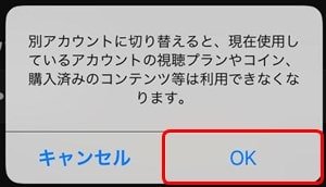 画面下に「アカウント切り替えました。」と表示されたら、ABEMAプレミアムをスマホ・タブレットにアカウント共有して同時視聴できます。