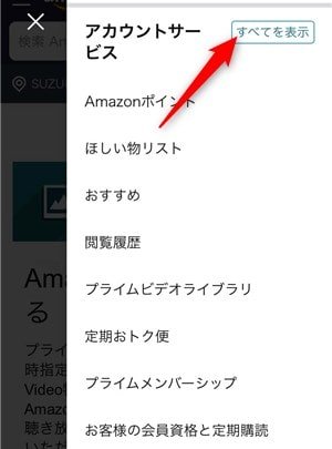 メニューが表示されるので、アカウントサービスの「すべてを表示」をクリック。