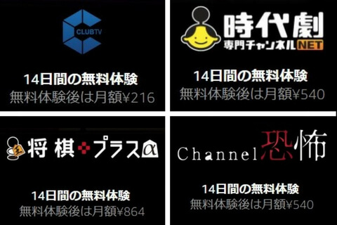 - Amazon Prime Videoチャンネルは1チャンネルごとに「初回14日間の無料体験」ができる