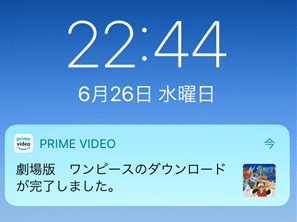 ちなみに、Amazonプライム・ビデオアプリの通知をオンにしておけば、ダウンロード完了したときにお知らせしてくれるので便利です!