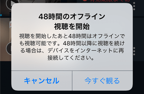 また、一度でもオフライン再生すると視聴期限が48時間になり、それを過ぎるとインターネットに接続するまで再生できなくなります。