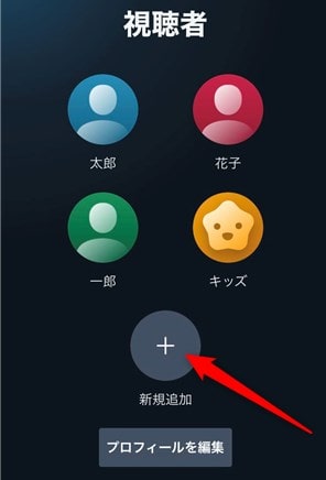 視聴者(プロフィール選択)が表示されるので、下にある「新規追加」をタップ。