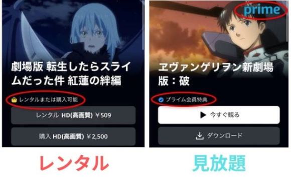 - Amazonプライムビデオのレンタルと見放題の見分け方