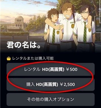 また、レンタルの作品詳細ページには「レンタルまたは購入可能」と表示されます。