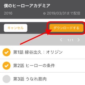 作品ページに移動したらエピソード一覧の横にある「ダウンロード」をタップ。