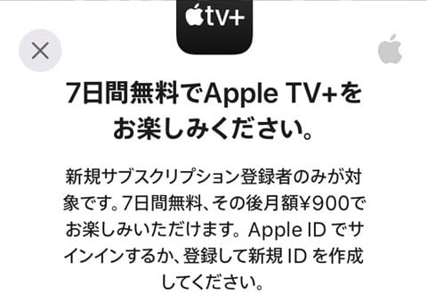 Apple TV+の月額料金は900円(税込)ですが、初めて利用する方は「7日間の無料期間」が用意されています。