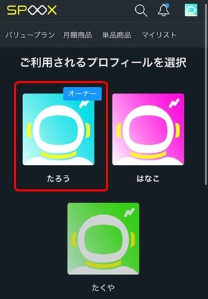 ご利用されるプロフィールを選択になるので、「オーナープロフィール」を選びます。