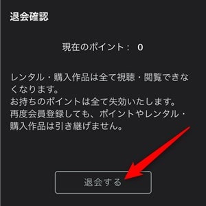 退会後はアカウントにログインできなくなるので、レンタル/購入した映画やTV番組は見られなくなります。