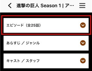作品詳細ページに移動したら、すぐ下の「エピソード」をクリック。