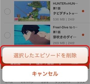 確認画面が表示されるので、最後に「選択したエピソードを削除」を選択。