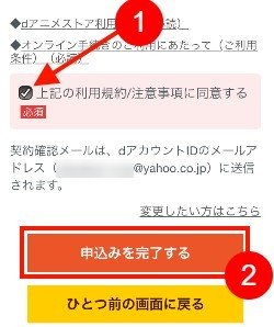 - 「dアニメストアの注意事項に同意する」にチェック