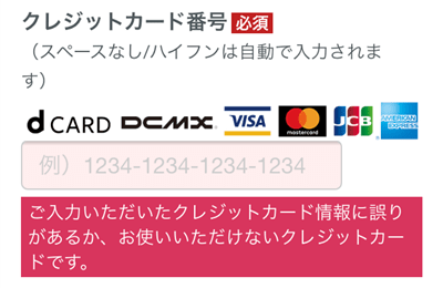 画面に「ご入力いただいたクレジットカード情報に誤りがあるか、お使いいただけないクレジットカードです。」と表示されて登録できませんでした。