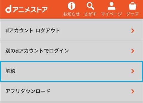 - dアニメストアを登録解除するにはページ下の「解約」からできる