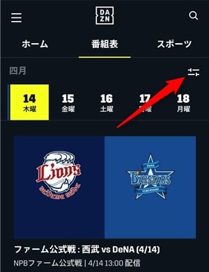 これで、DAZNアプリから番組表を確認できます!