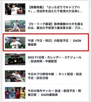 公式が運営しているニュースサイト「DAZN NEWS」でも配信予定スケジュールを確認できます。