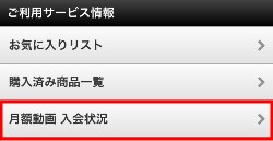 続けて、ご利用サービス情報から「月額動画 入会状況」を選びます。