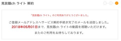 最後に「見放題chライトのご利用ありがとうございました。」と表示されれば、DMM見放題chライトの解約方法はすべて完了です。