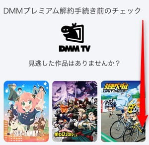 DMMプレミアムの解約手続き前チェックが表示されるので、見逃した作品はないか確認します。