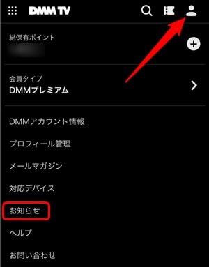 お知らせからDMM TVの障害・メンテナンス情報などを確認できます。