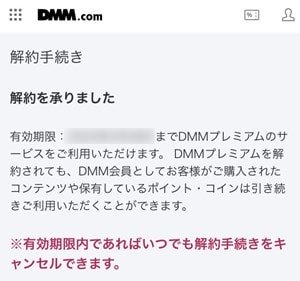 DMM TVの有料会員は解約後でも残りの契約期間まで動画を見れます。