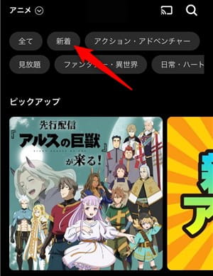 - 新着作品を確認するにはアプリや公式サイトの「カテゴリ」→「新着」からできる