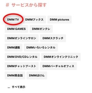 DMMサービス全体のプレスリリースが表示されますが、探しにくいのでページ真ん中あたりにある「サービスから探す」まで移動します(※PCはサイドバーにあります)。