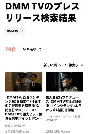 これで、DMM TVに関するプレスリリースだけ確認できるので、今後の配信予定作品などをチェックできます。
