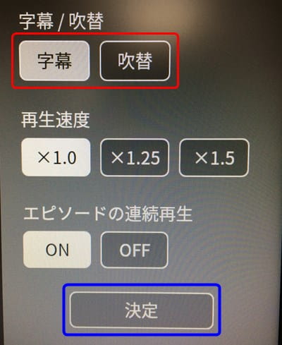 あとは「字幕」または「吹替」を選んで、『決定』を押すだけです。