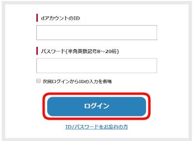 dアカウントのログイン画面になるので、メールアドレスとパスワードを入力して、下の「ログイン」を押します。