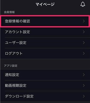 マイページの会員情報から「登録情報の確認」を選択。