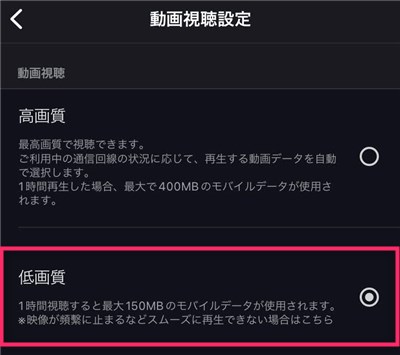 その代わりに1時間あたりに使用される通信量には、高画質は「最大400MB」となっており、低画質は「最大150MB」となっています。