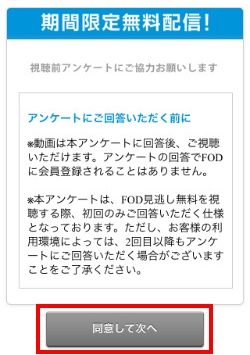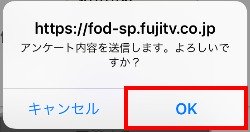 確認画面の「アンケート内容を送信します。よろしいですか?」が表示されるので、最後に『OK』を押すと、スマホ・タブレットからFOD見逃し無料の番組を見ることができます。