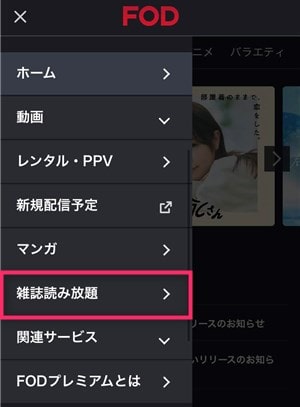 メニューから「雑誌読み放題」を選択。