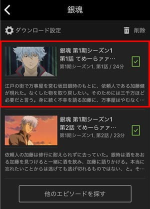 次に、作品の中から見たいエピソード(話数)を選びます。