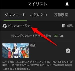 この機能を利用するにはマイリストのダウンロードから「ダウンロード設定」をタップ。