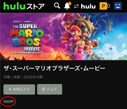 Huluストアで配信している映画・TV番組は有料となっており、無料期間でも1本あたり約110~550円を請求されます。