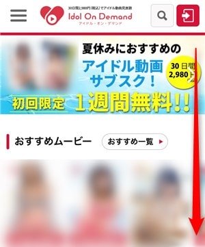 アイドルオンデマンドのトップページが表示されたら、一番下までスクロールします。