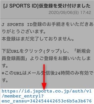 「J SPORTS ID 仮登録を受け付けました」というメールに記載されているURLを受信後24時間以内にクリック。